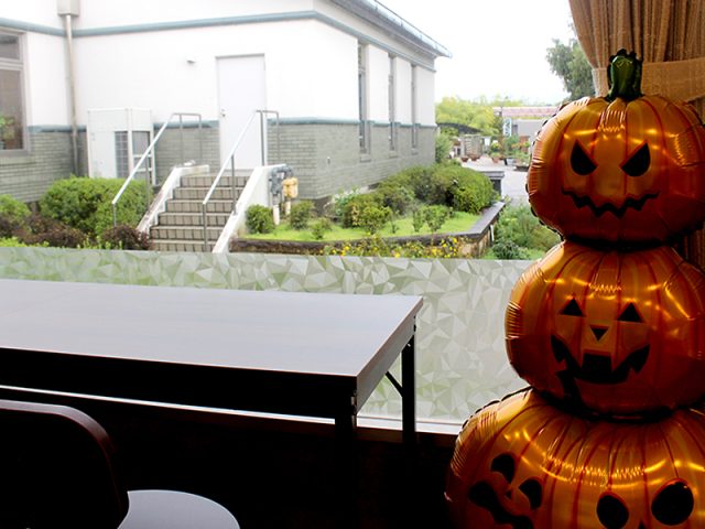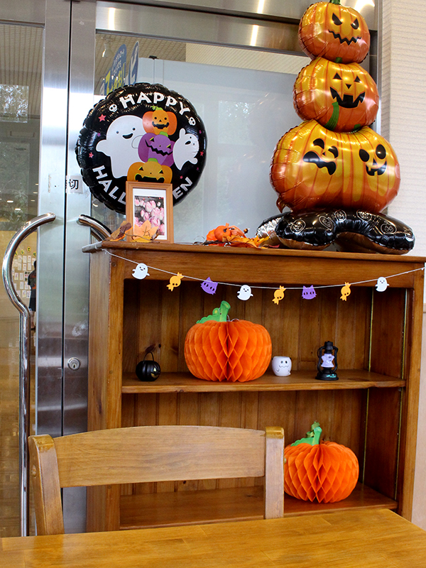 写真は、エントランスにある「フォトスポット(ハロウィン風)」です。