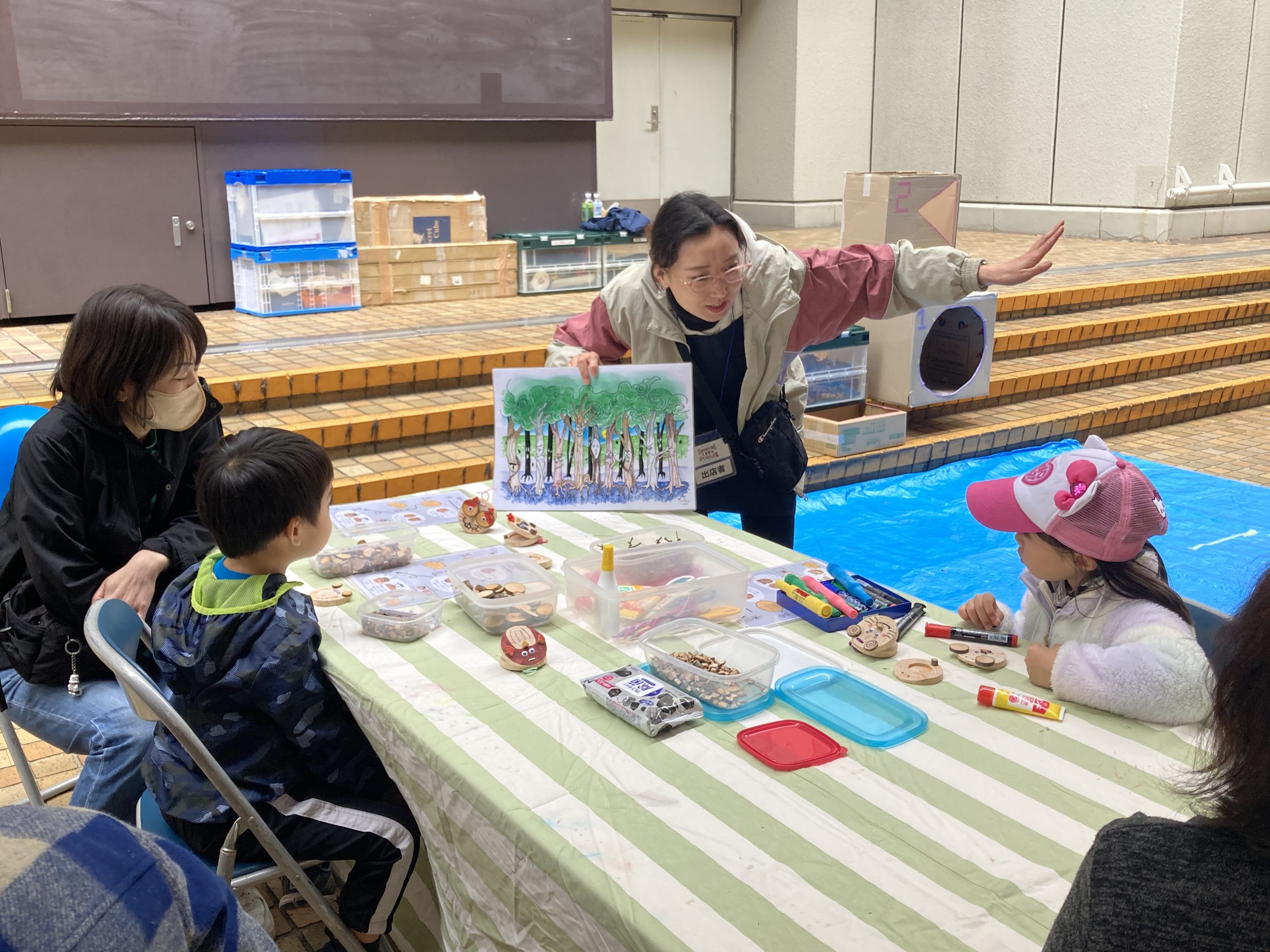 森のお手入れが必要なことを紙芝居で解説したり、間伐材の有効活用を目的とした、体験型の学習プログラムです。