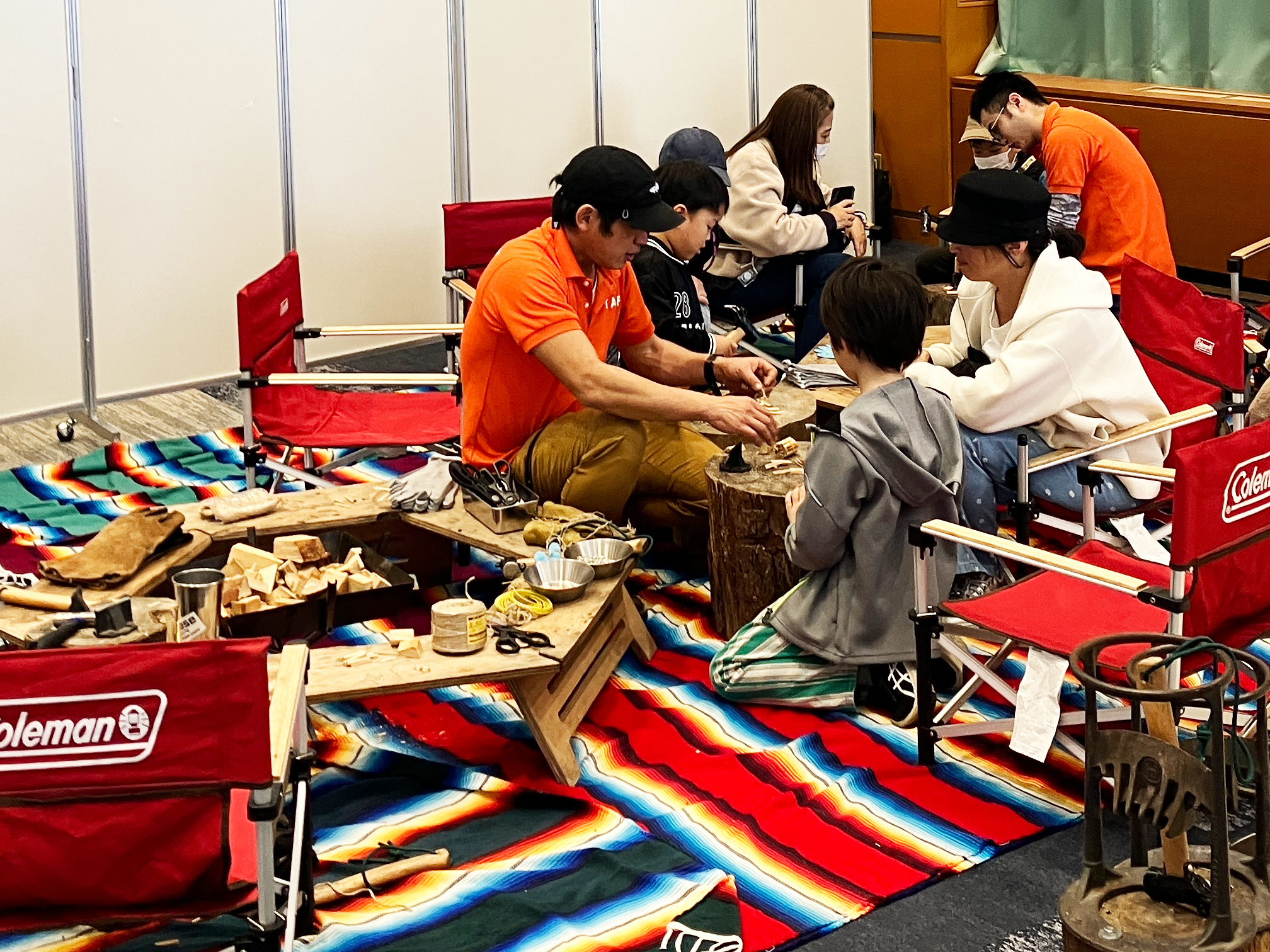 小学校低学年~中学年くらいの参加者が多かったですが、本物の薪束を見たことがないお子さまも多く、ブースに展示した薪やアウトドア道具に興味をもってくれたり、自分たちで束ねたミニ薪束の出来上がりに満足した様子がみられました。