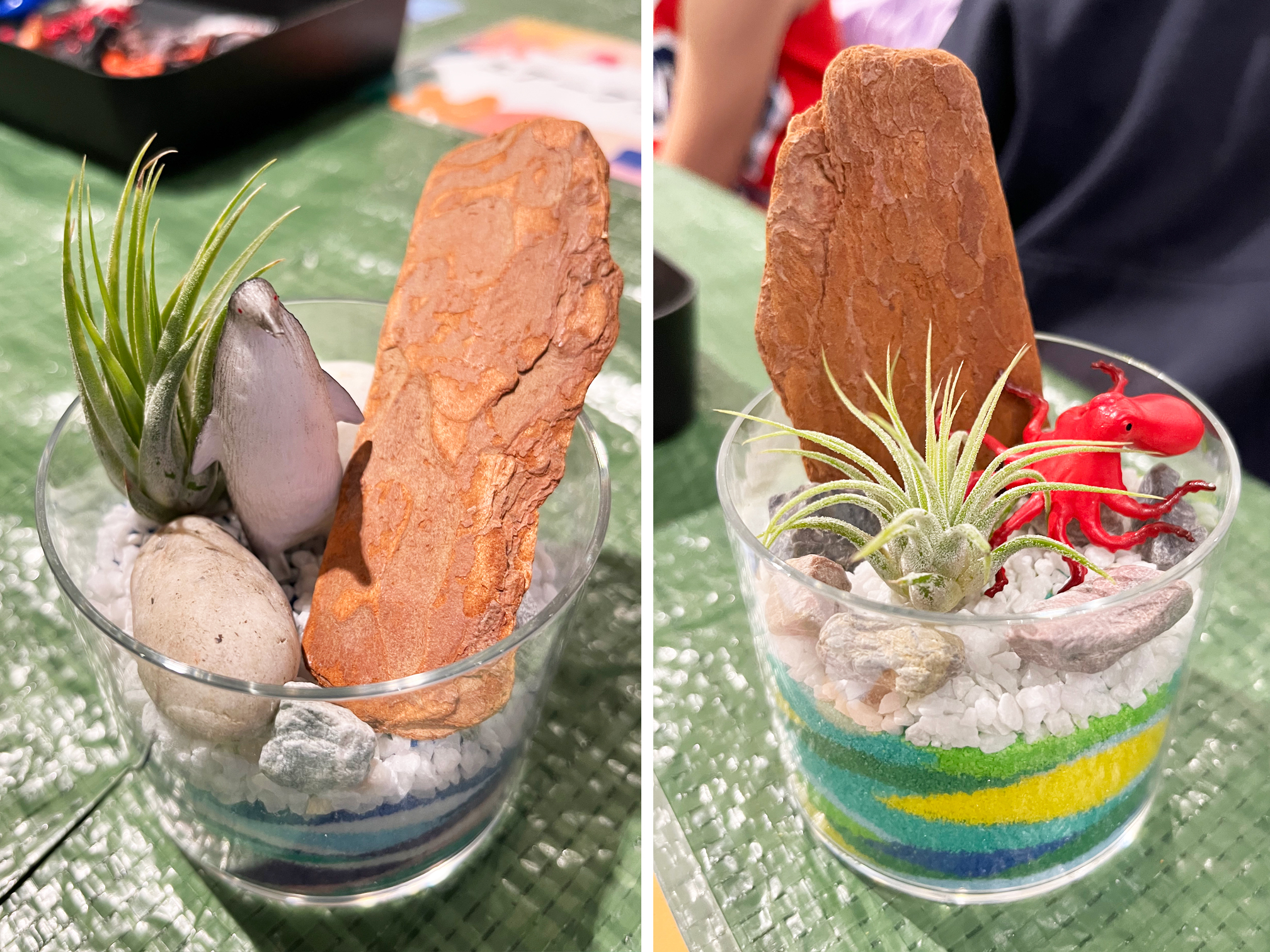 お好きなカラーサンドやエアプランツなどを使った「グラスガーデンづくり」や、クリスマスのフラワー・グリーン商品なども販売し、会場全体がとてもにぎわっていました。特に、皆さん集中して取り組まれていたグラスガーデンはどれも力作揃い!