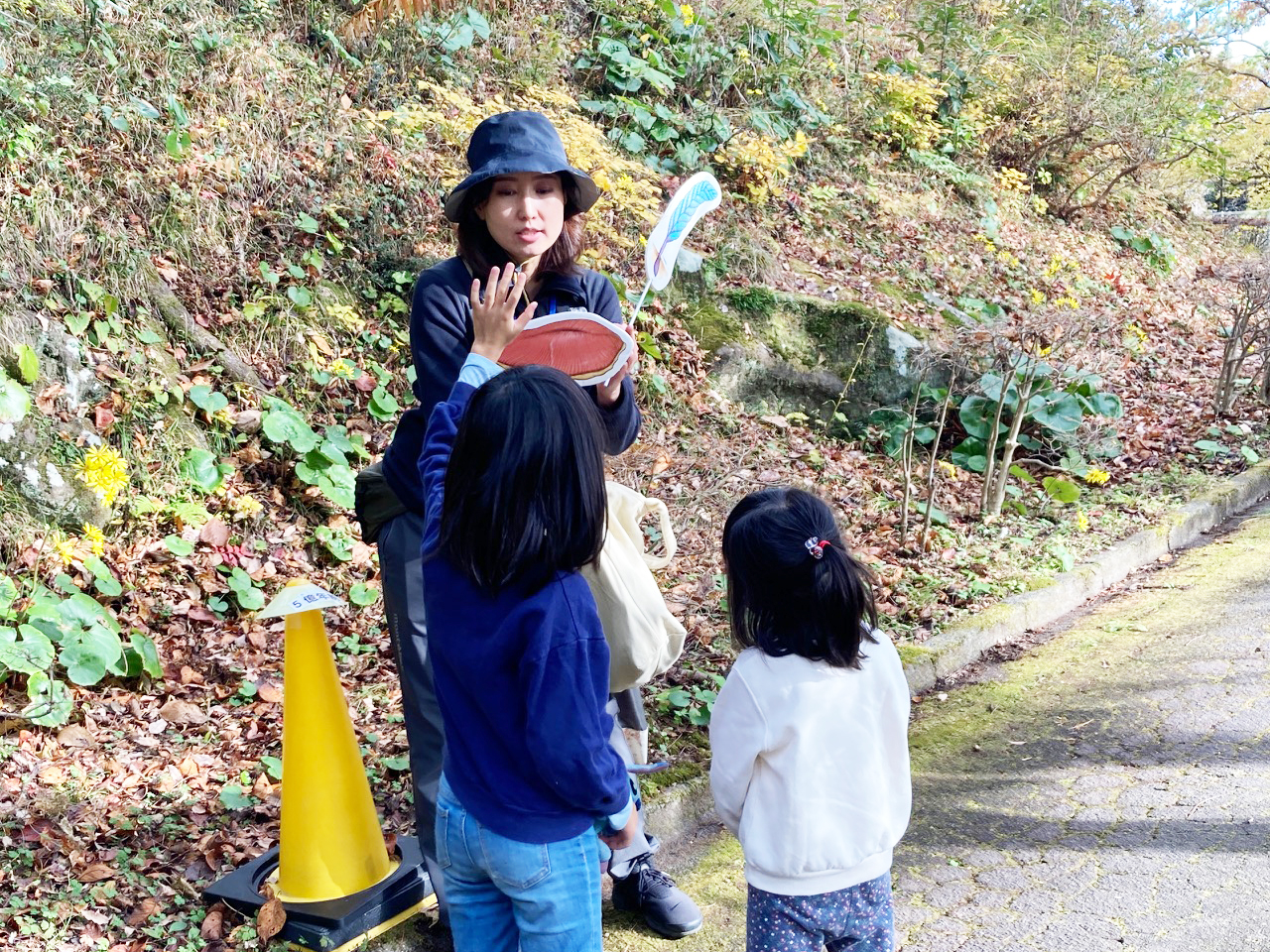 また、この他にも「もりのふれあいDays」では、熱海猟友会の方々によるアニマルトラッキング「ひめのさわ生きもの探検隊」や、地元で森林保全などに取り組むNPO法人熱海キコリーズによる、間伐材をつかった「木製クルマづくり」のワークショップ、公園の木材を使った丸太切り体験などなど、多くのプログラムが開催されていました。