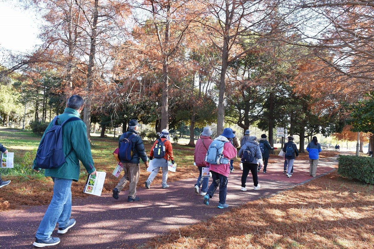 JR東日本が提供する50歳以上の方を対象とした会員制サービス「大人の休日倶楽部 趣味の会」との連携企画として、当社が管理運営する「埼玉県営みさと公園」を会場に、秋冬の樹木のみどころや特徴などをご紹介する講座「樹木医と行く身近な秋色さがし~水辺を彩る並木を楽しむ~」を開催しました。