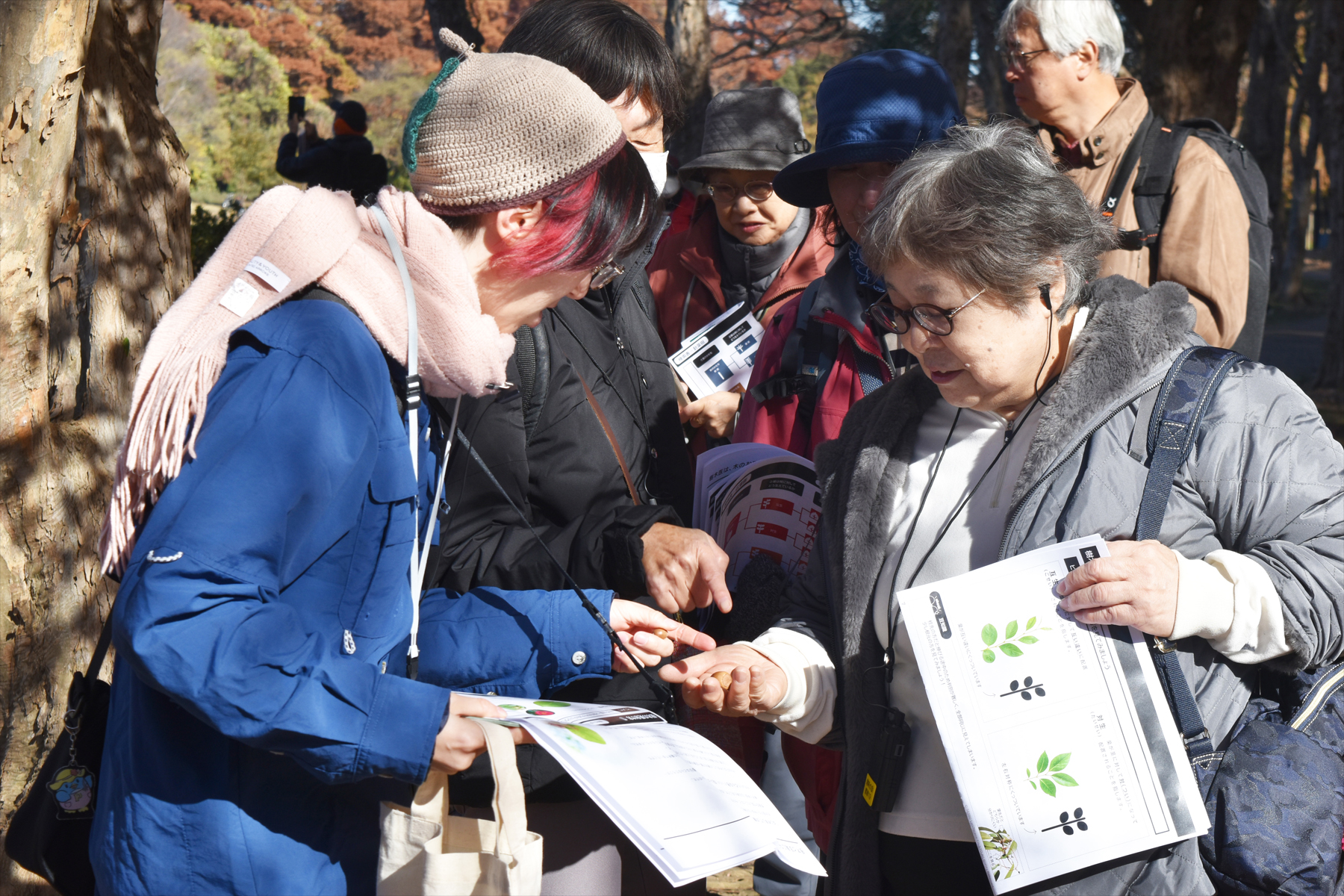 池沿いにある並木道では、メタセコイアとラクウショウの見分け方や、実の特徴などもご紹介し、皆さん熱心に観察されていました!