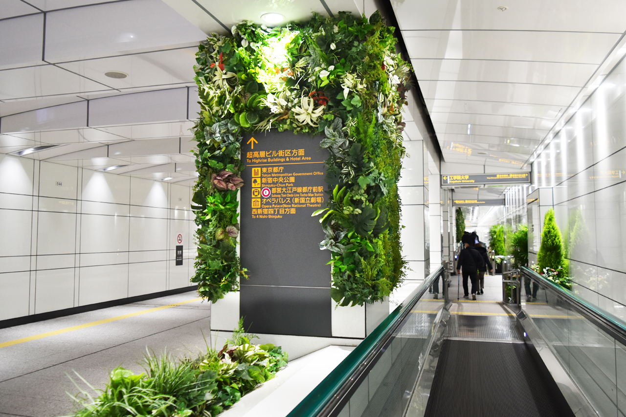 2025年12月に、新宿駅から都庁・新宿中央公園方面に続く約300メートルの地下道「新宿副都心4号街路地下道」※の屋内緑化やプランター設置を行いました。