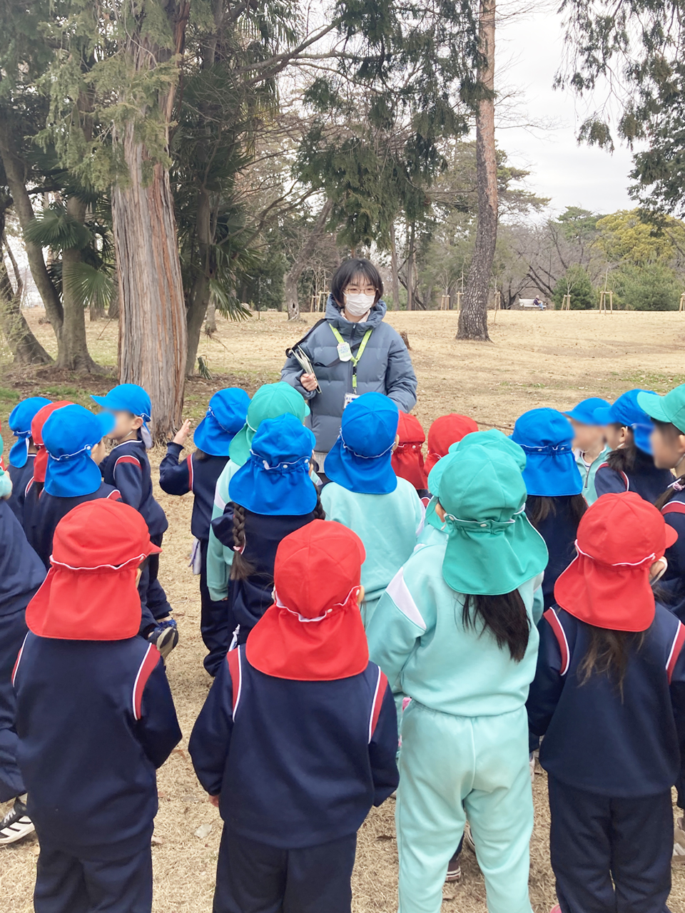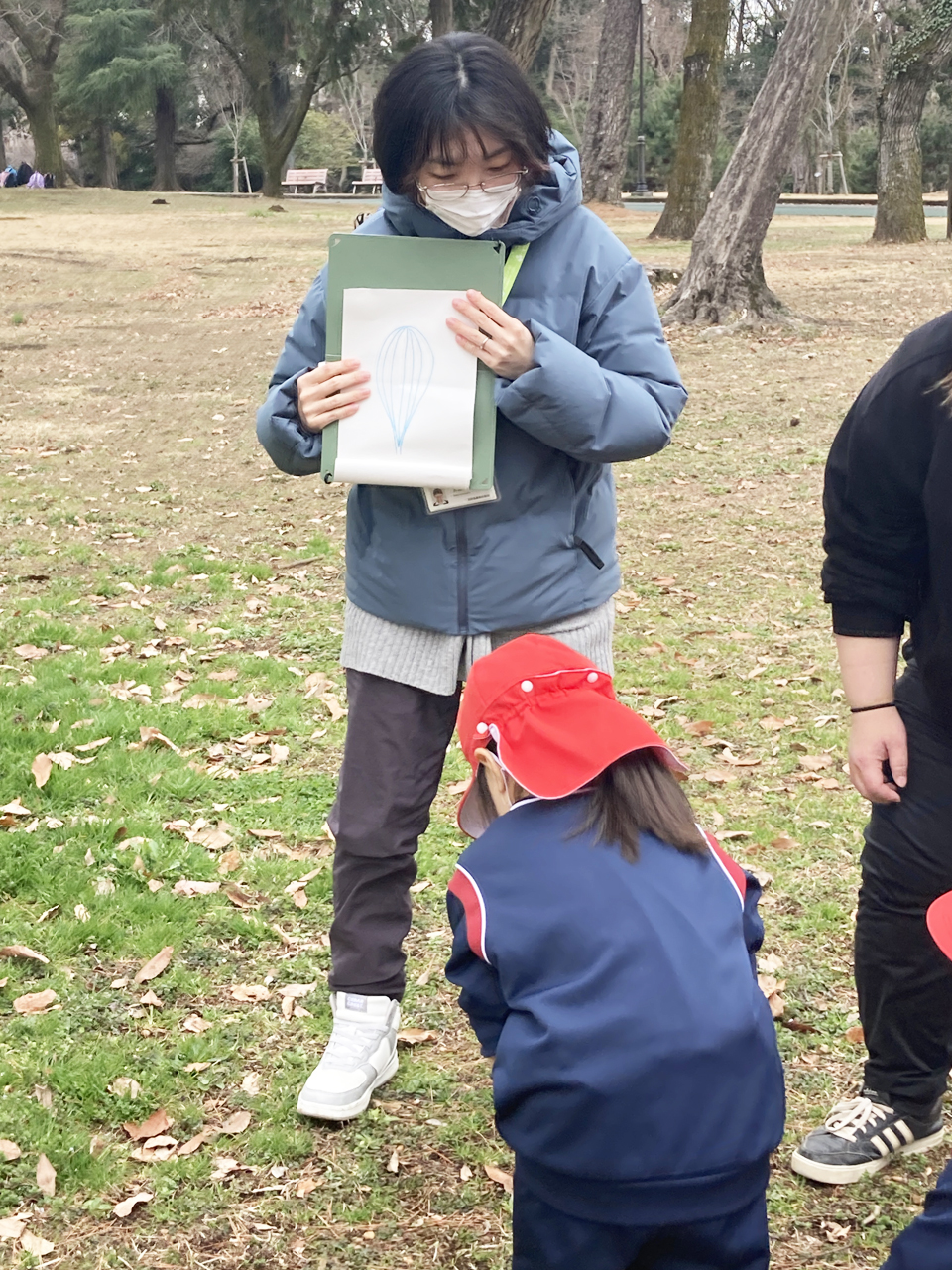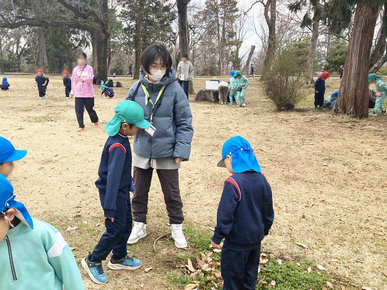 今回のプログラムは、認可保育園「Nicot所沢」の園児の皆さんにむけて、公園のなかで遊びながら自然に親しんでもらえるよう企画をしたものです。