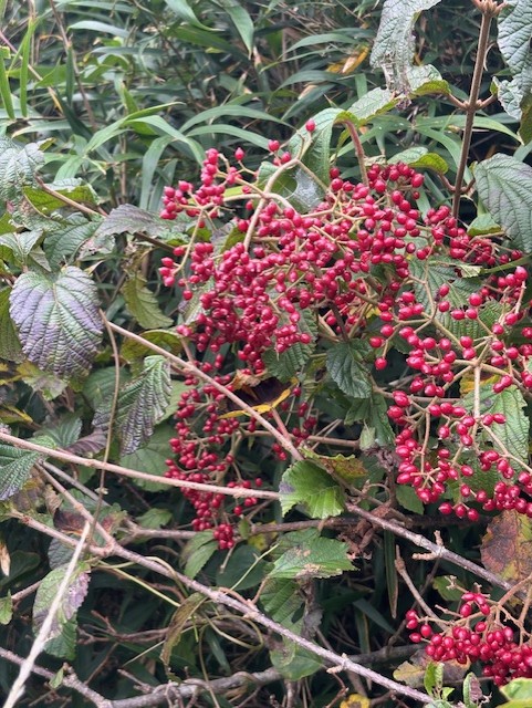 草木が生い茂っており、なかなか近寄れませんでしたが、写真は恐らくガマズミと思われます。