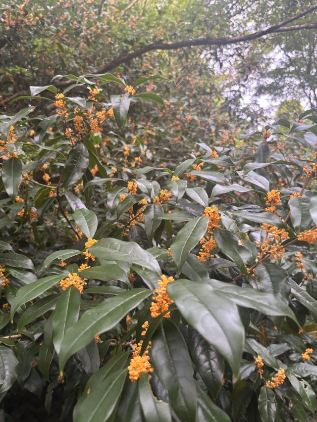 写真は林間駐車場のもので、比較的大きなキンモクセイが生えています。