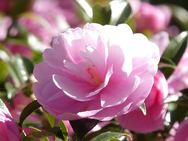 サザンカ駐車場のサザンカが、だいぶ終わりかけてきました。