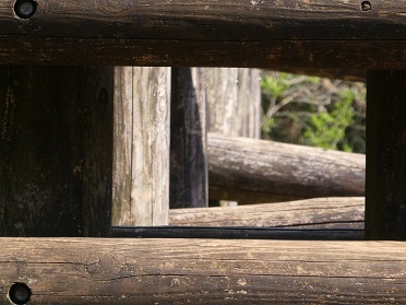 縦横に組まれた丸太を乗り越えていく大型の遊具です。