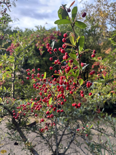 晩秋から冬にかけて、小さな赤い実が枝いっぱいに鈴なりになります。寒さの中でも葉が落ちない常緑性で、冬の景色をパッと明るく彩ってくれますね。鳥たちにとっても大切な食料源。鮮やかな赤色は、寒空の下で一際目を引く、自然からの贈り物です。