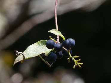 白い粉をふいたような実ですが、写真のものは青い色が目立ちますね。