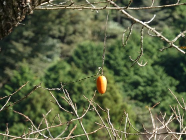 たまたま、ちょうどいい具合に枝からぶら下がっているカラスウリを見つけたので撮ってみました。