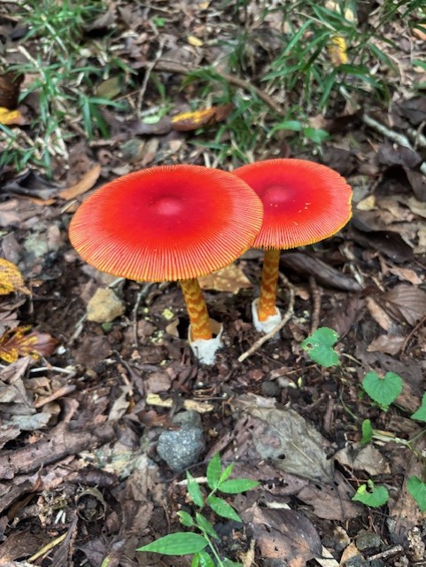 先日投稿したタマゴダケが、だいぶ育ち、更にもう一本そばから育っていました!