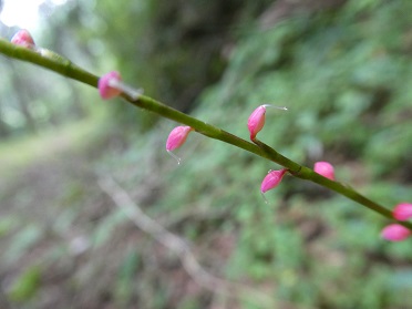 細長い茎にちょんちょんと、ちっちゃな赤い花が連続してついています。