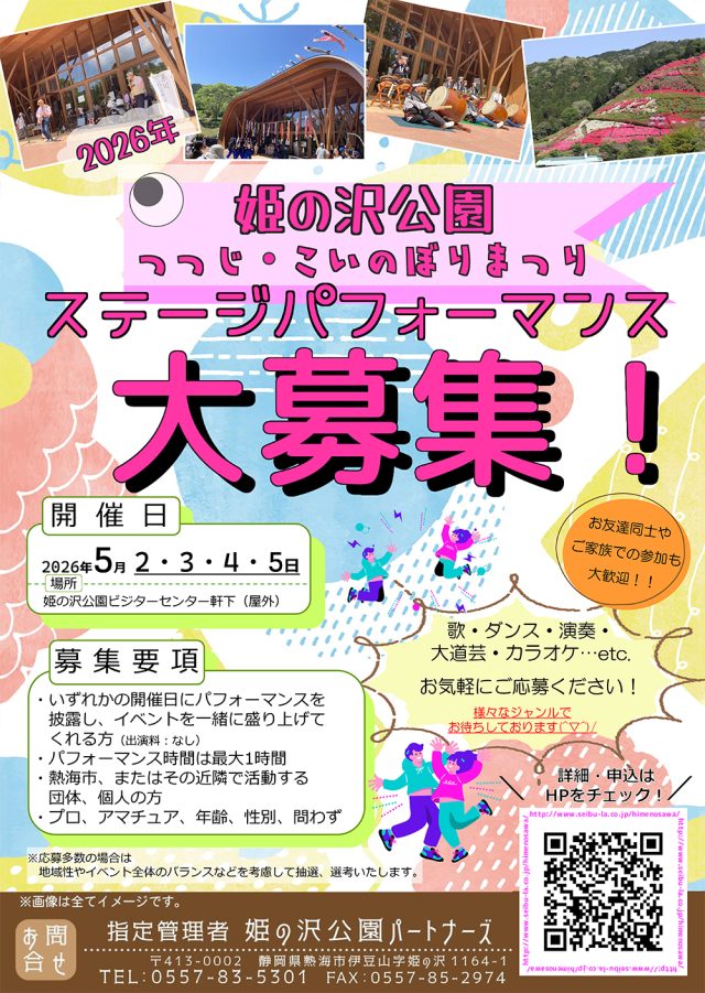2026年つつじ・こいのぼりまつりにてステージパフォーマンスを披露してくれる方を大募集中です!!