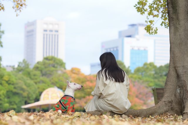 おやつをおねだりしそうな愛犬の表情もですが、画面下の葉っぱの前ボケ、とろけるような背景ボケのビル群、少し明るめに表現した技法も見事としか言いようがありません。