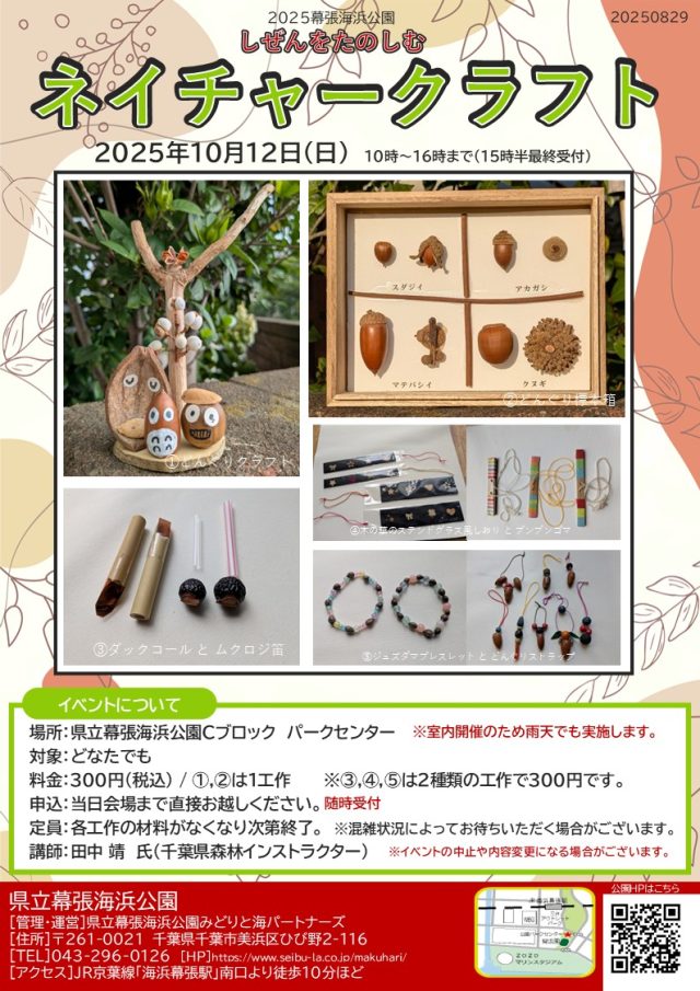 自然の素材を使ったネイチャークラフトのイベントを幕張海浜公園パークセンターで開催します!