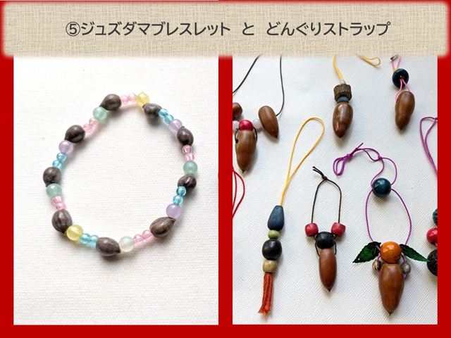 ➄ジュズダマブレスレットとどんぐりストラップ