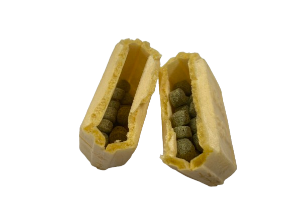 ※モナカタイプのエサで、中に粒状のエサが入っています。モナカもあげることができます。