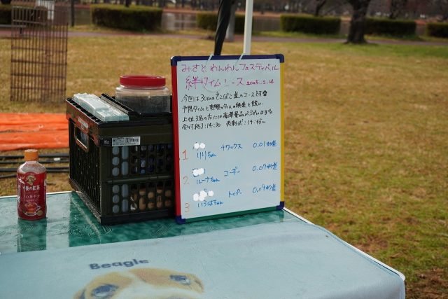飼い主さんがタイムを申告し、その後差が少ないほど良いというちょっと変わったレースです。