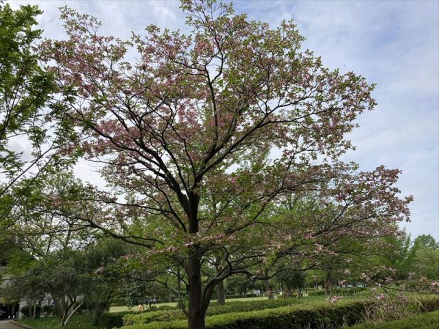 まずは、屋根付き広場と遊具広場(サンデンタルピアキッズベース)の間などに咲くハナミズキです。