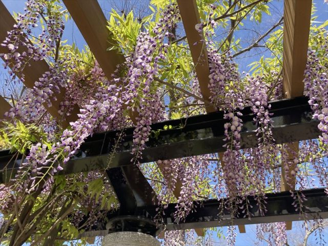 垂れ下がった、たくさんの紫色の花がなんとも癒されますね。