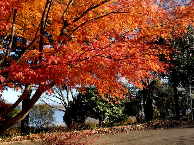 日が当たると紅葉が美しい園内。お散歩や写真を撮るのもおすすめです。