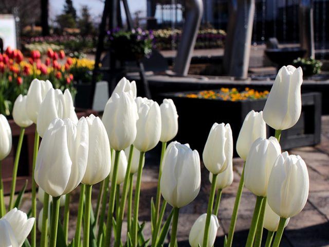 写真は「アイスチューリップ」。コミュニティ広場で様々な種類がご覧いただけます。