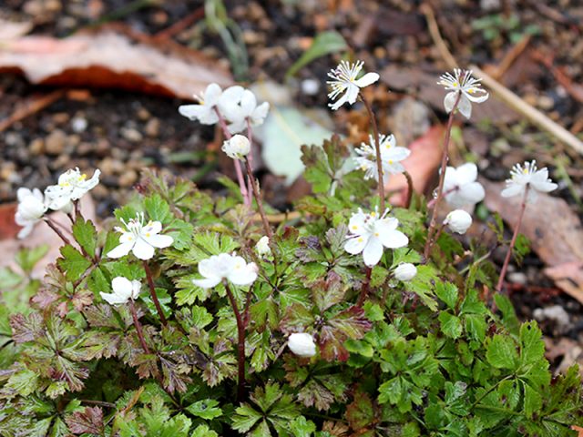 写真は「バイカオウレン」。牧野富太郎博士が愛した早春の花として知られています。