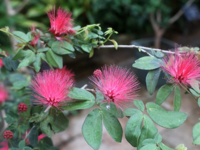 ブーゲンビリア(手前・ピンク)とカエンカズラ(奥・オレンジ)