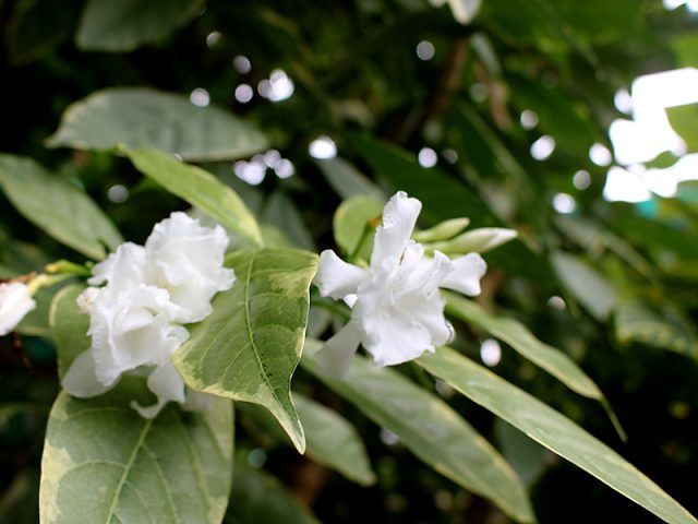 「あずまや」からの様子。ゼノビア(スズランノキ)。