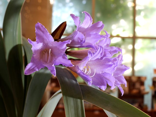 写真は、「ブルーアマリリス」。入口ゲート付近でご覧いただけます。