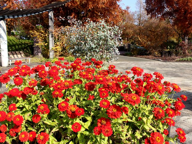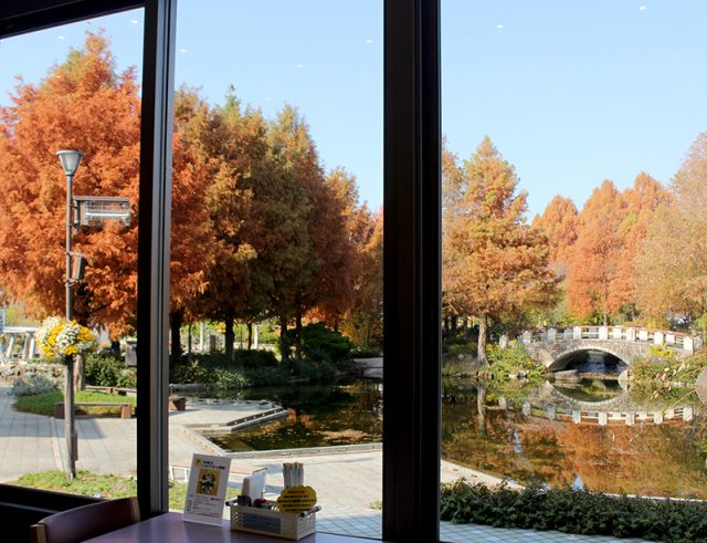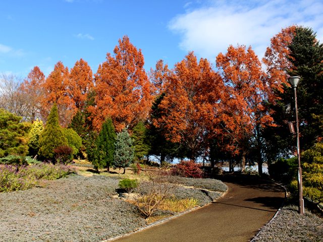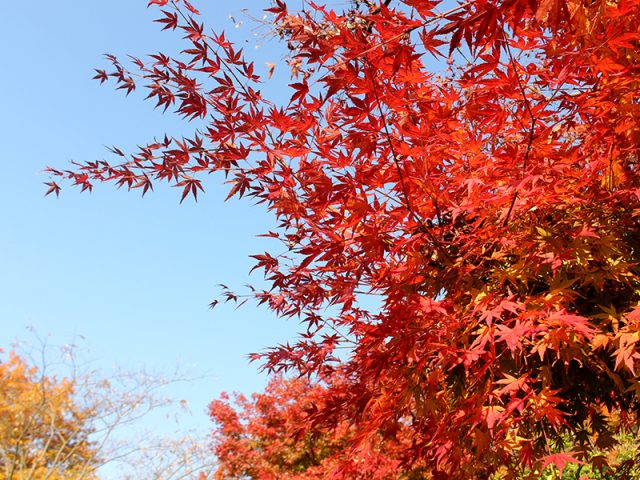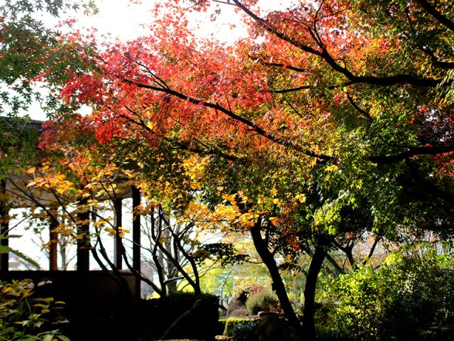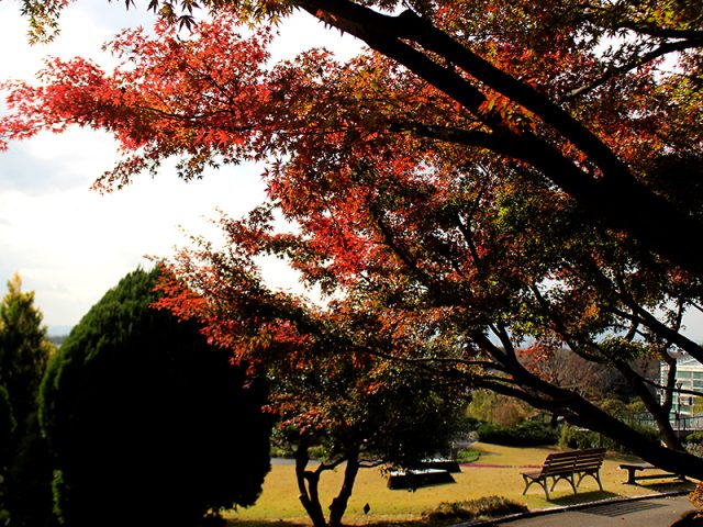 日が当たると紅葉が美しい園内。お散歩や写真を撮るのもおすすめです。