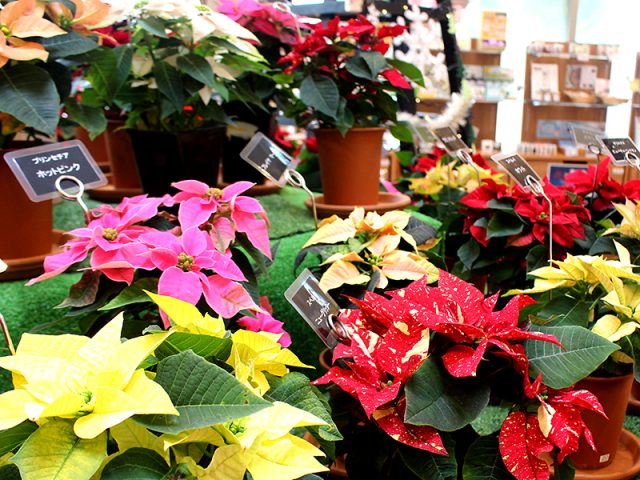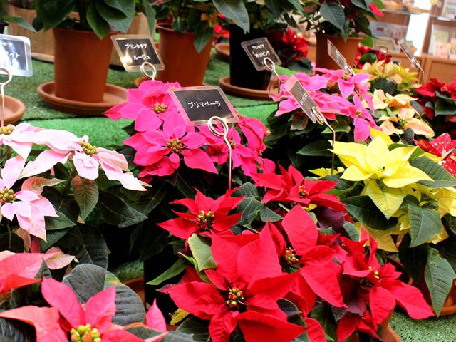 写真は、ポインセチア。最近は色の種類も増えて、見ごたえがありますね。