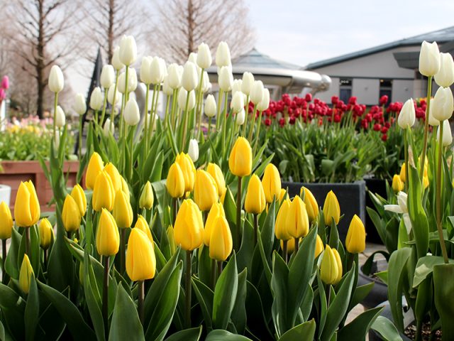 コミュニティ広場では見頃のアイスチューリップをお楽しみいただけます。