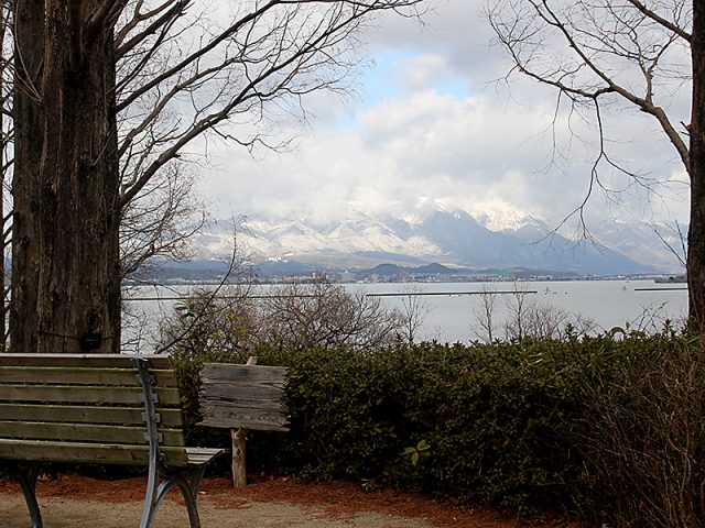 湖西の山々が白くかすんでいます。ちょっと寒そう?