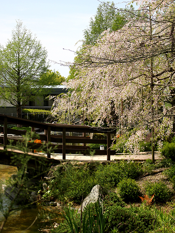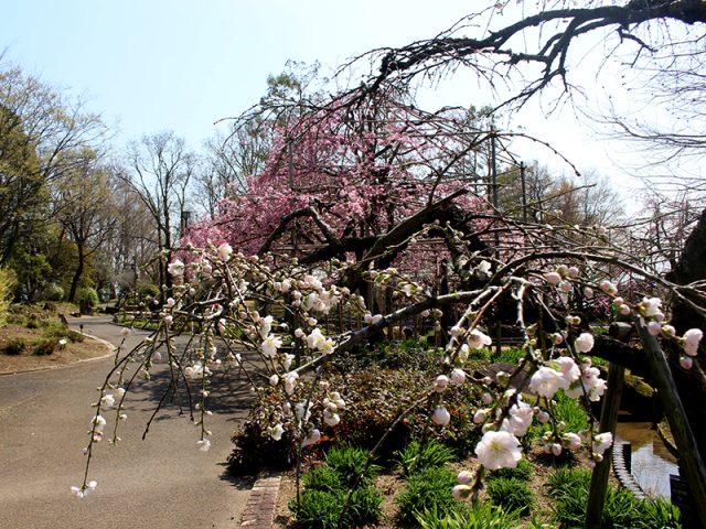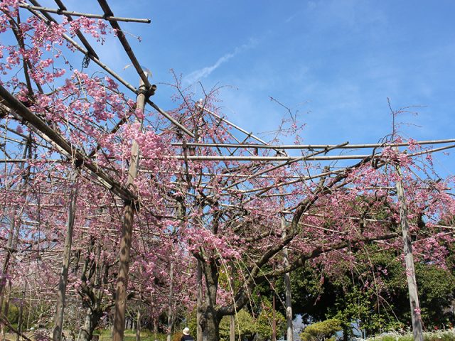 シダレザクラは「湿生花園」と「花影の池」の周りでご覧いただけます。3~5分咲きぐらいでしょうか。