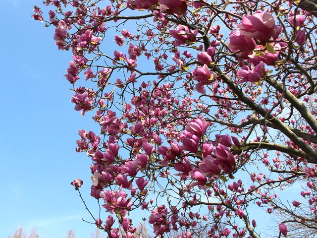モクレン見頃です。遊具広場でご覧いただけます。背の高い木です。