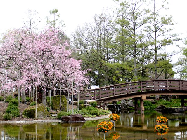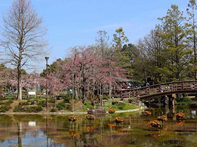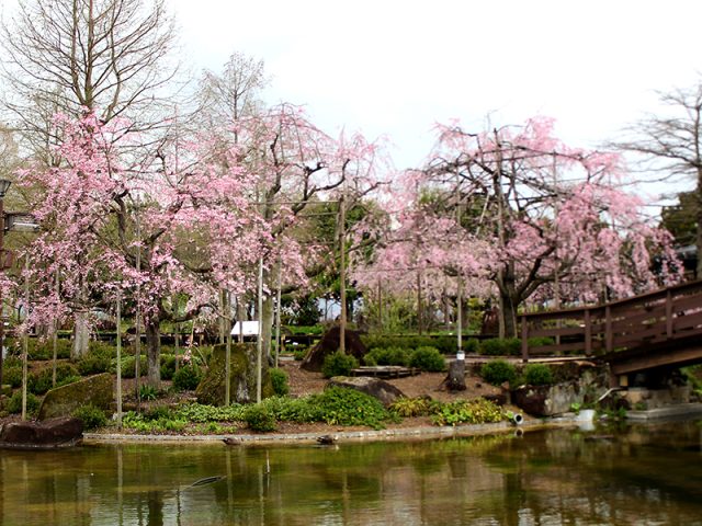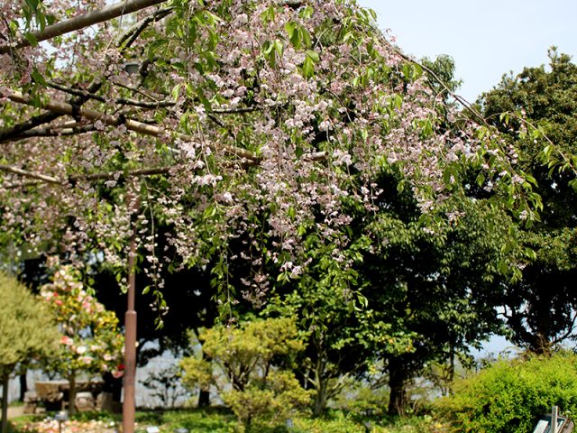 写真は「シダレザクラ」。花影の池からの様子です。