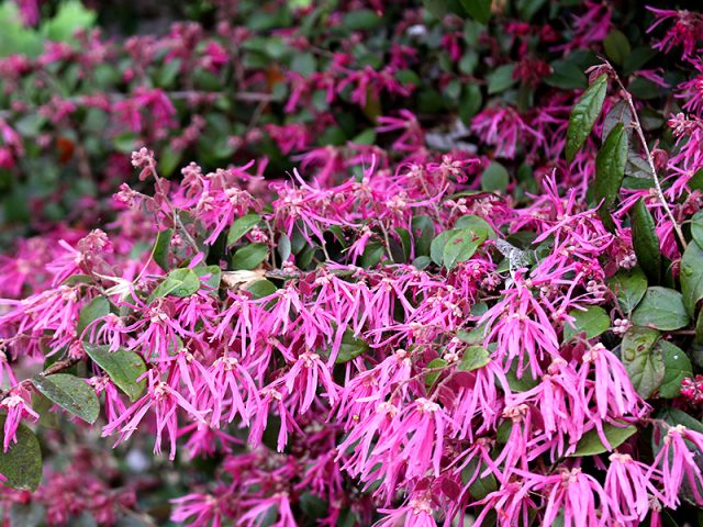 写真は「ベニバナトキワマンサク」。華やかな紅色が目を引きます。