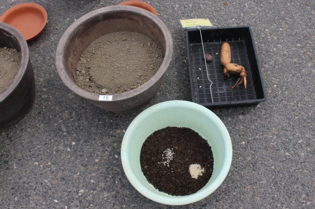 田土と腐葉土、石灰、化学肥料、