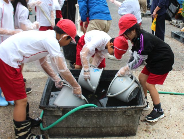 仕上げにに水をバケツに3杯いれましょう!