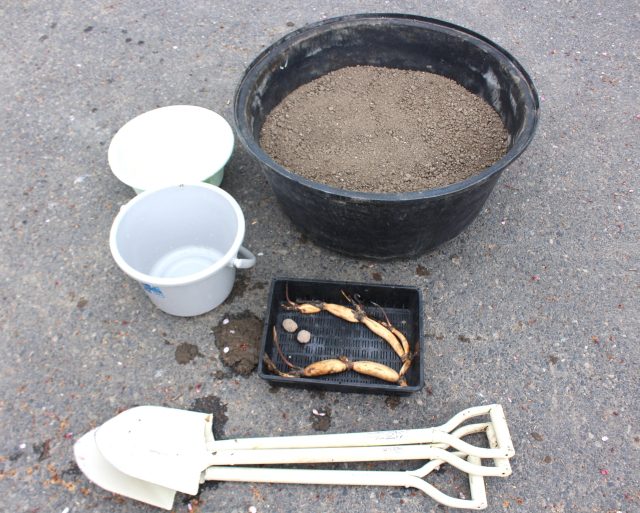 そして植え付けるレンコンと後で入れる固形肥料です。