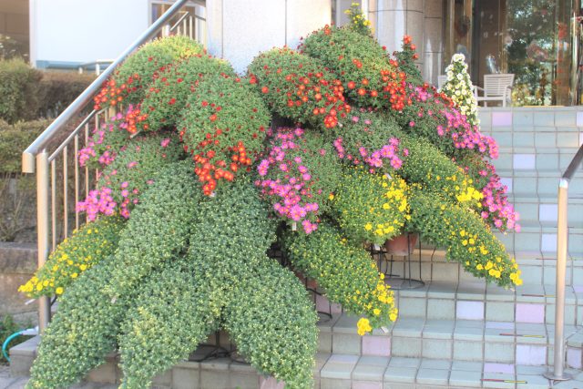 色とりどりの花が咲き誇る園内。お客様でにぎわっています。