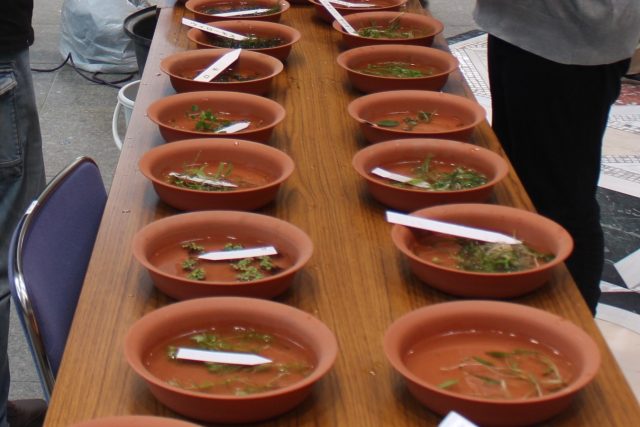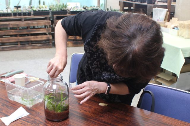 選んだ水草をボトルの中に植え込んでいく様子は真剣そのもの!