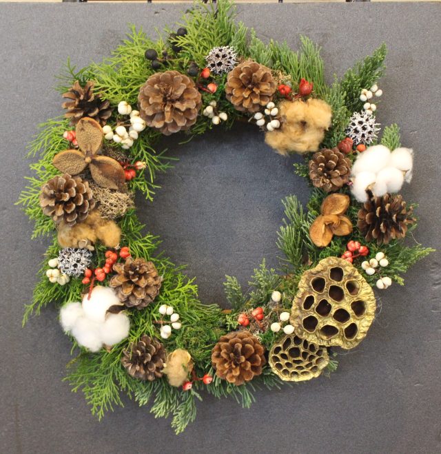 園内で採れた木の実やお花などを使ったクリスマスリース作りを、