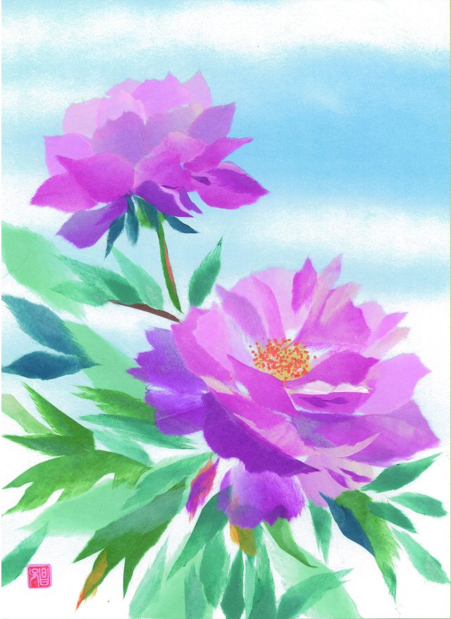 「和紙ちぎり絵」とは、日本文化である手すき和紙を素材とし、ちぎる・剥ぐ・貼る、といった手法で制作する絵画です。