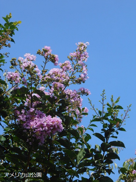 アメリカ山公園にあるのは丈の低いピンク色のわい性サルスベリと背の高いうすむらさき色のサルスベリ。