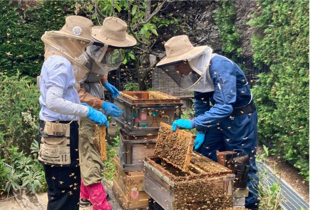 地元NPO団体や養蜂家と共同で、公園内でスタッフがみつばちの飼育管理を行っています。飼育場所については、安全上一般には非公開となっていますが、取材ご希望の場合は随時ご連絡ください。