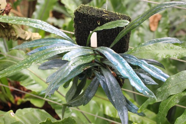 葉が青緑のような美しい色をしていて、金属のような光沢を放っています。